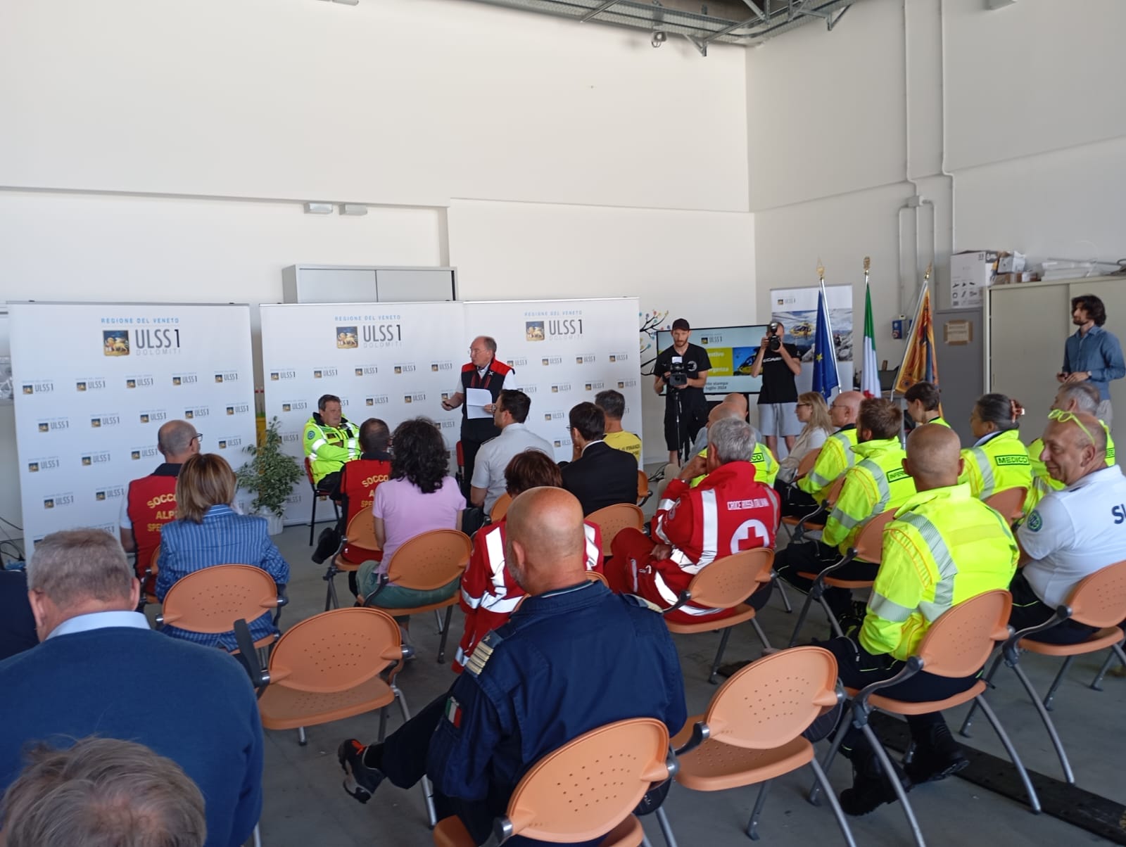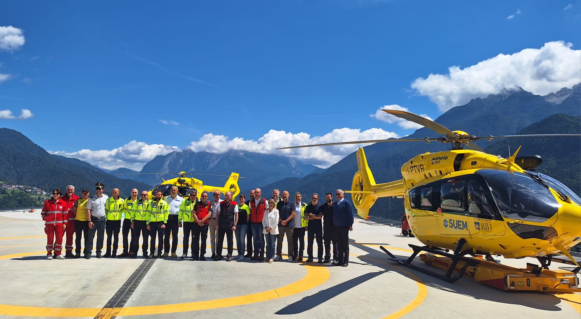 Questa mattina, alla base HEMS di Pieve di Cadore, il commissario Giuseppe Dal Ben con il direttore del CREU regionale Paolo Rosi ha presentato il potenziamento della rete dei soccorsi nelle Dolomiti per la